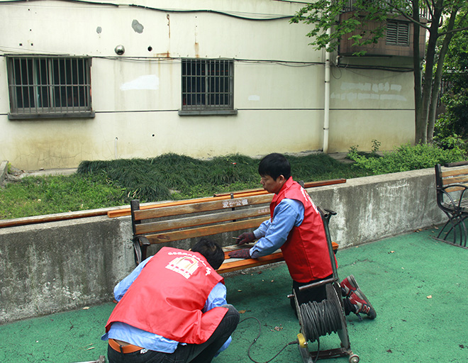 4月16日上午9时许,在通运新村2幢西侧的健身场地上,一群“红马甲”正在围着场地上的木椅忙碌。伴随着 [...]